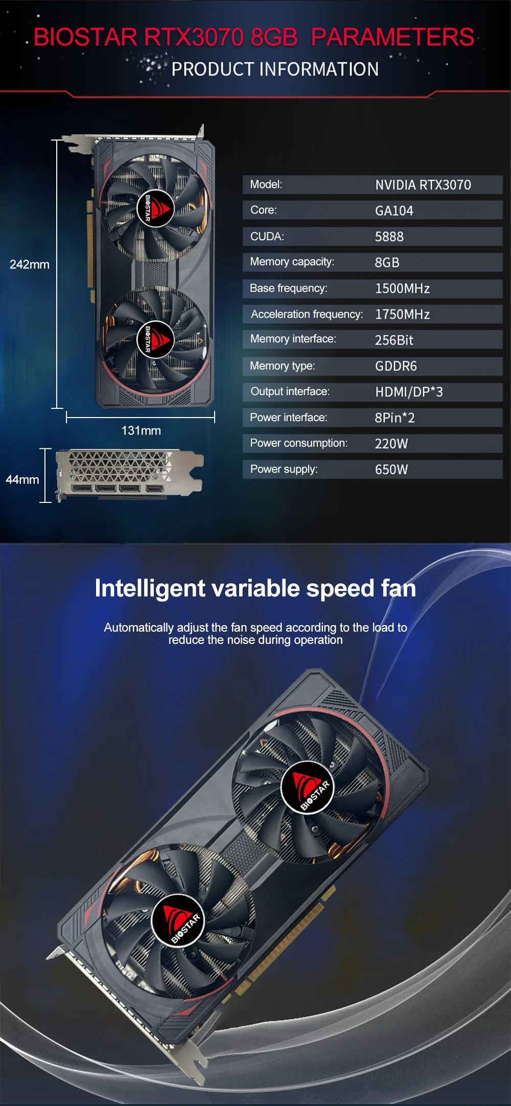 BIOSTAR NEW RTX3070 8gb Graphics Cards NVIDIA RTX3070 8GB Gaming Video Card 8pin GPU Gamer graphics card placa de video